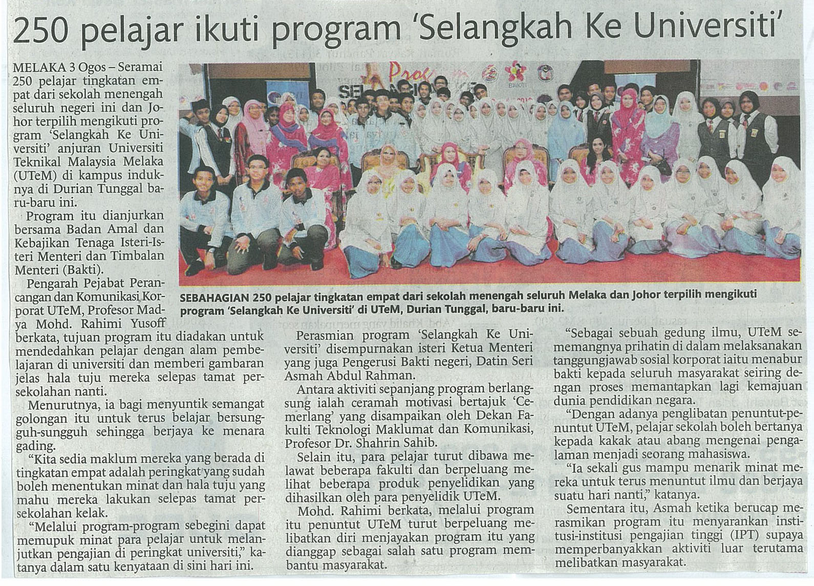 250 Pelajar Ikuti Program ' Selangkah Ke Universiti '