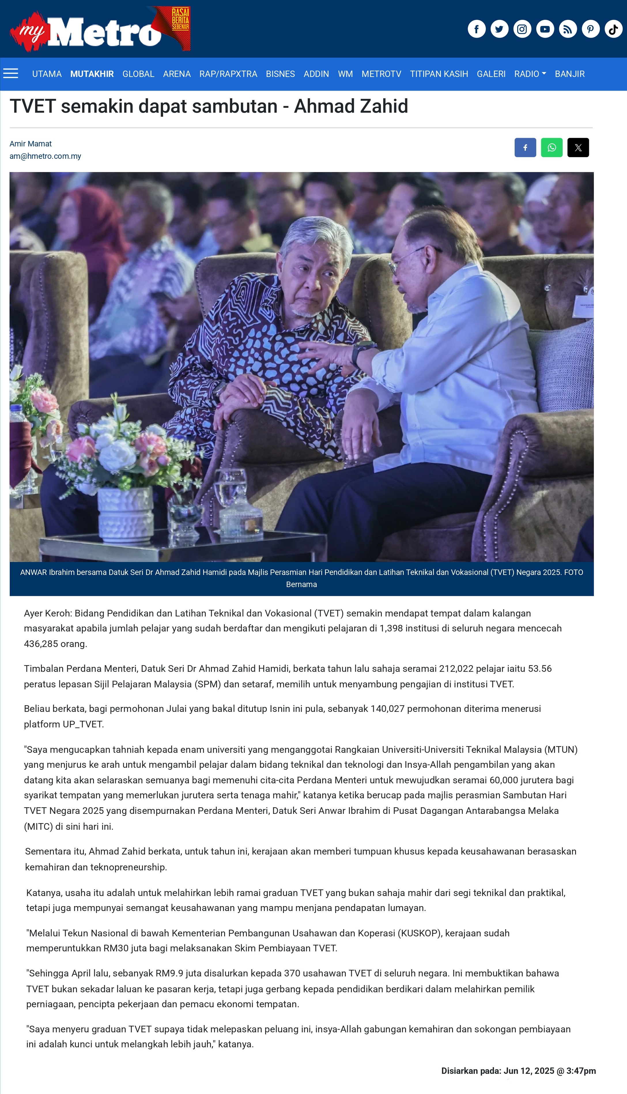 227 TVET semakin dapat sambutan - Ahmad Zahid