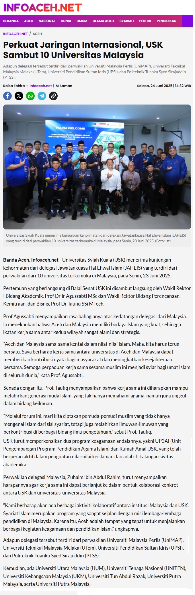 252 Perkuat Jaringan Internasional, USK Sambut 10 Universitas Malaysia