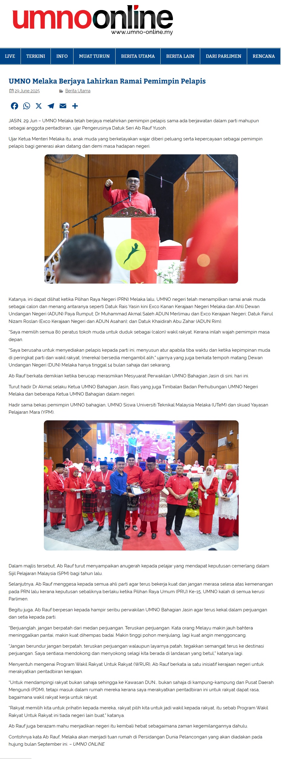 254 UMNO Melaka Berjaya Lahirkan Ramai Pemimpin Pelapis