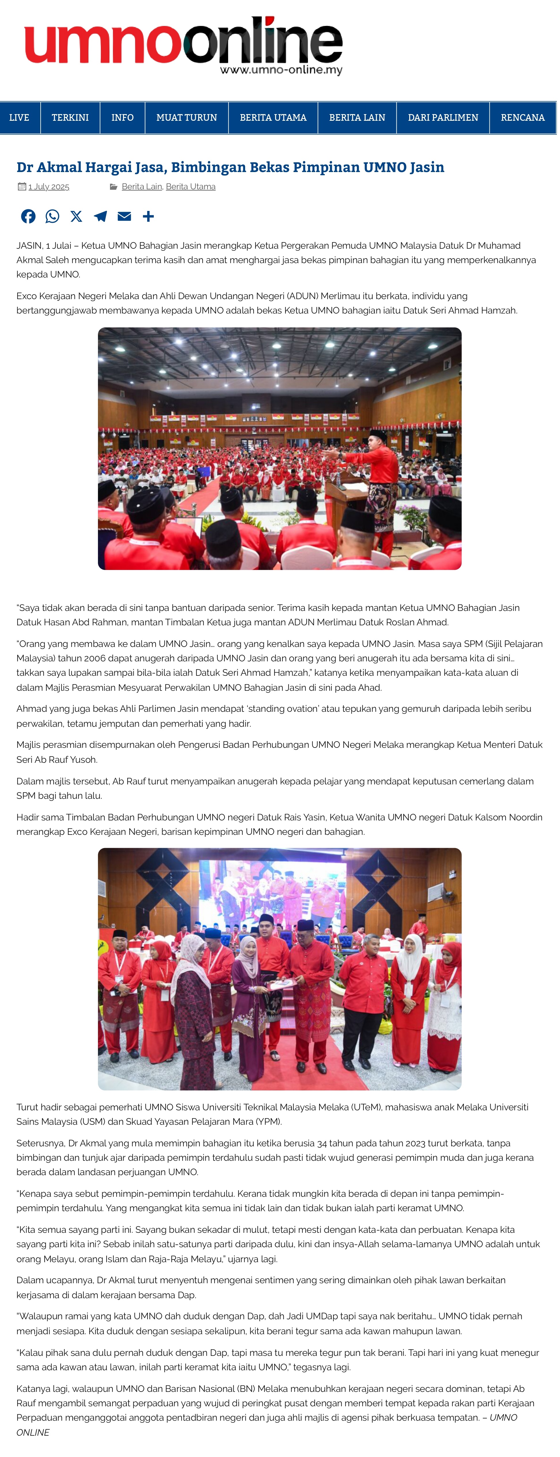 265 Dr Akmal Hargai Jasa, Bimbingan Bekas Pimpinan UMNO Jasin