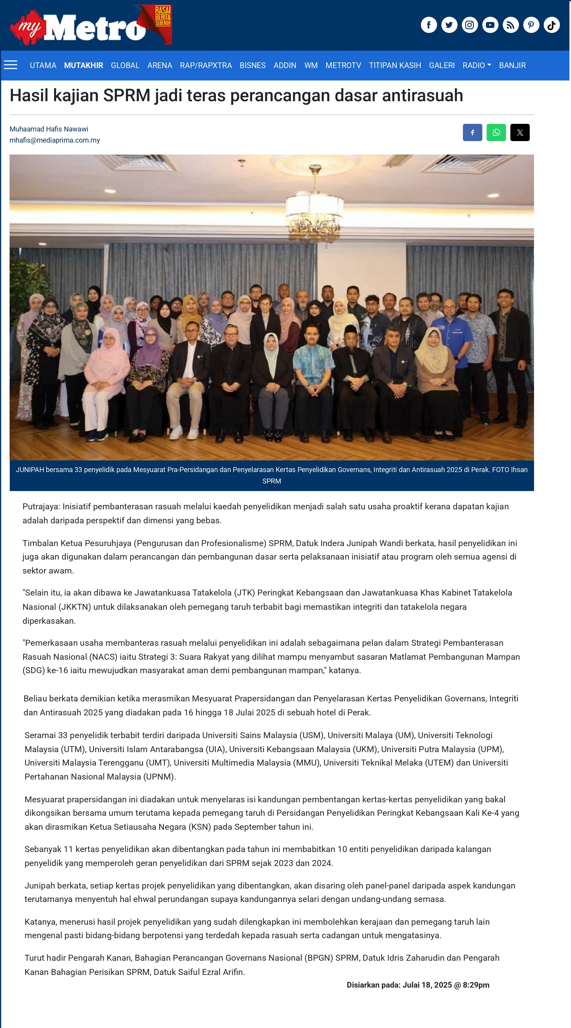 308 Hasil kajian SPRM jadi teras perancangan dasar antirasuah