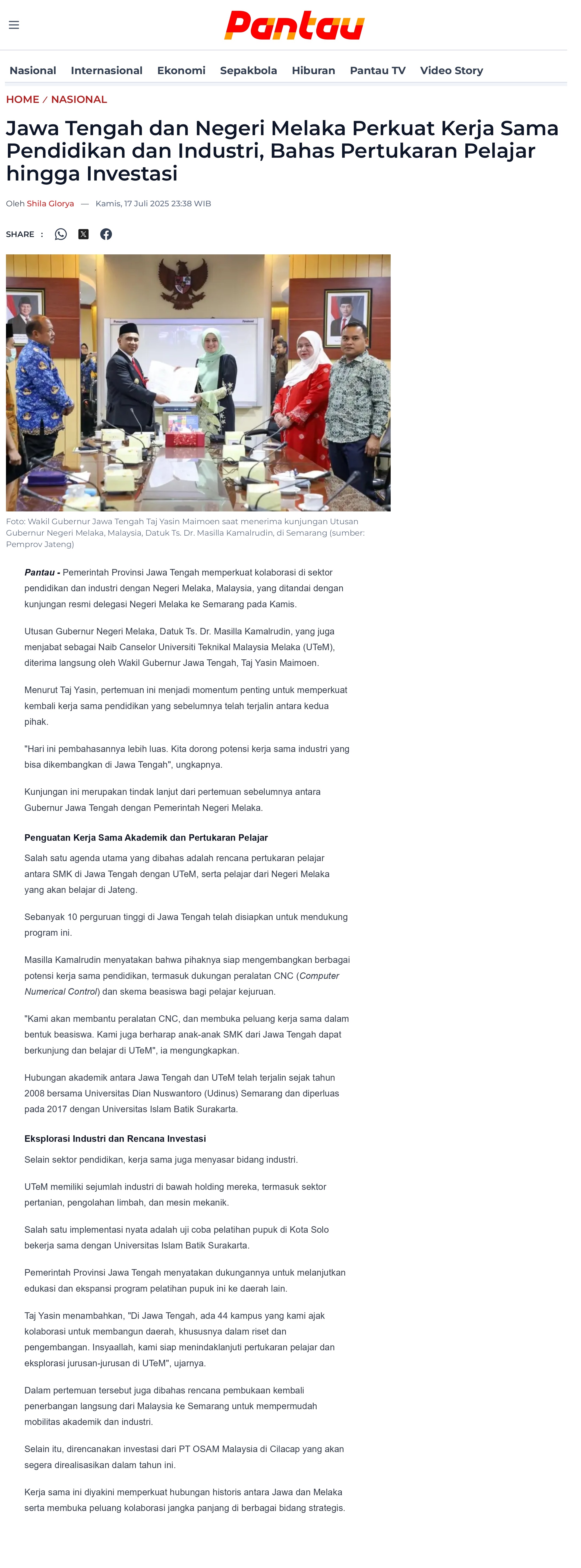 321 Jawa Tengah dan Negeri Melaka Perkuat Kerja Sama Pendidikan dan Industri, Bahas Pertukaran Pelajar hingga Investasi - Pantau.com