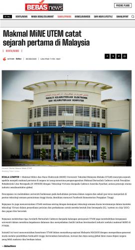 355 Makmal MiNE UTEM catat sejarah pertama di Malaysia - BebasNews