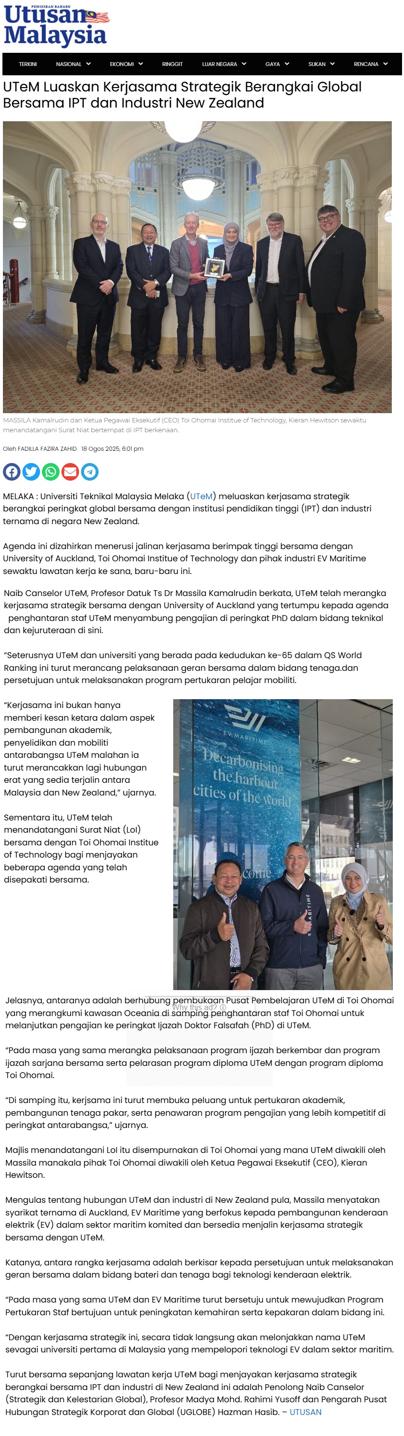 403 UTeM Luaskan Kerjasama Global , IPT Industri New Zealand