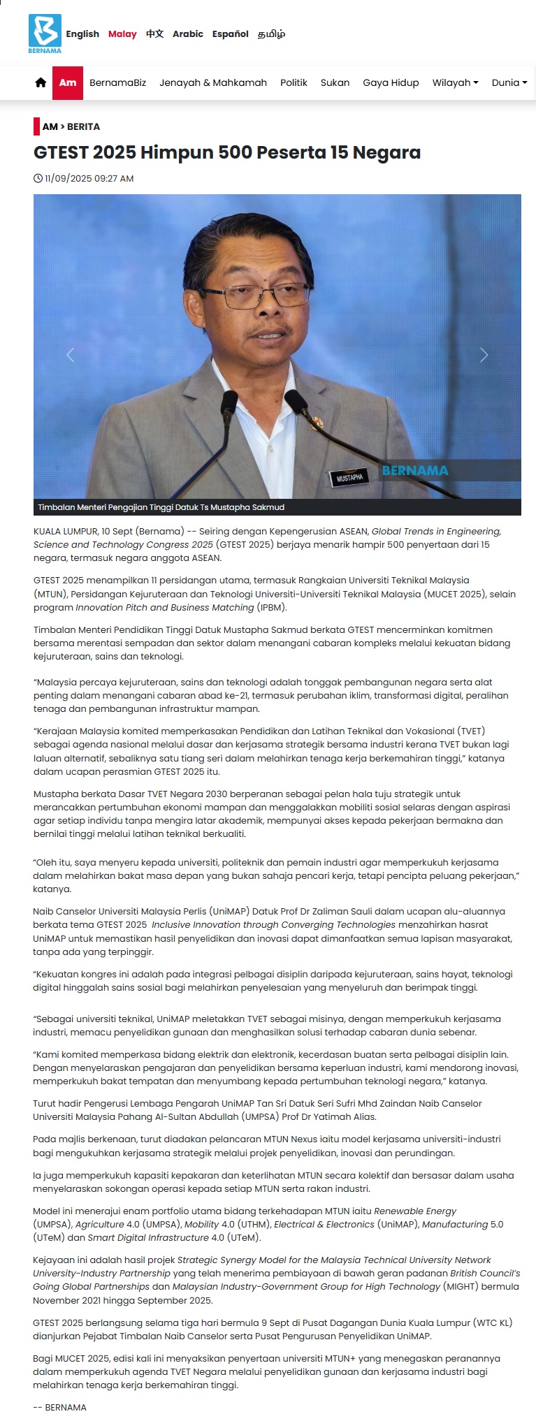 459 BERNAMA - GTEST 2025 Himpun 500 Peserta 15 Negara