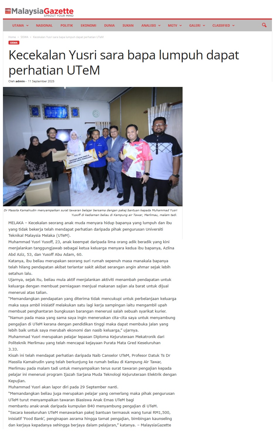 465 Kecekalan Yusri sara bapa lumpuh dapat perhatian UTeM