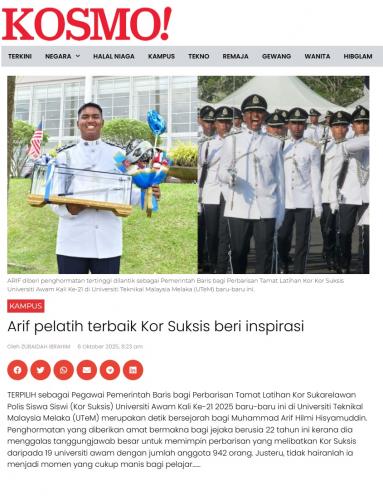 524 Arif pelatih terbaik Kor Suksis beri inspirasi - Kosmo Digital