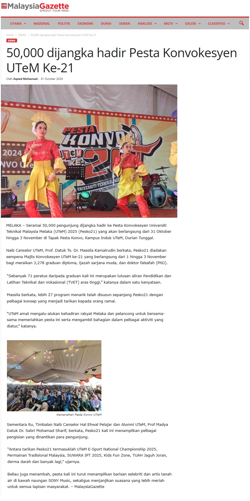 568 50,000 dijangka hadir Pesta Konvokesyen UTeM Ke-21