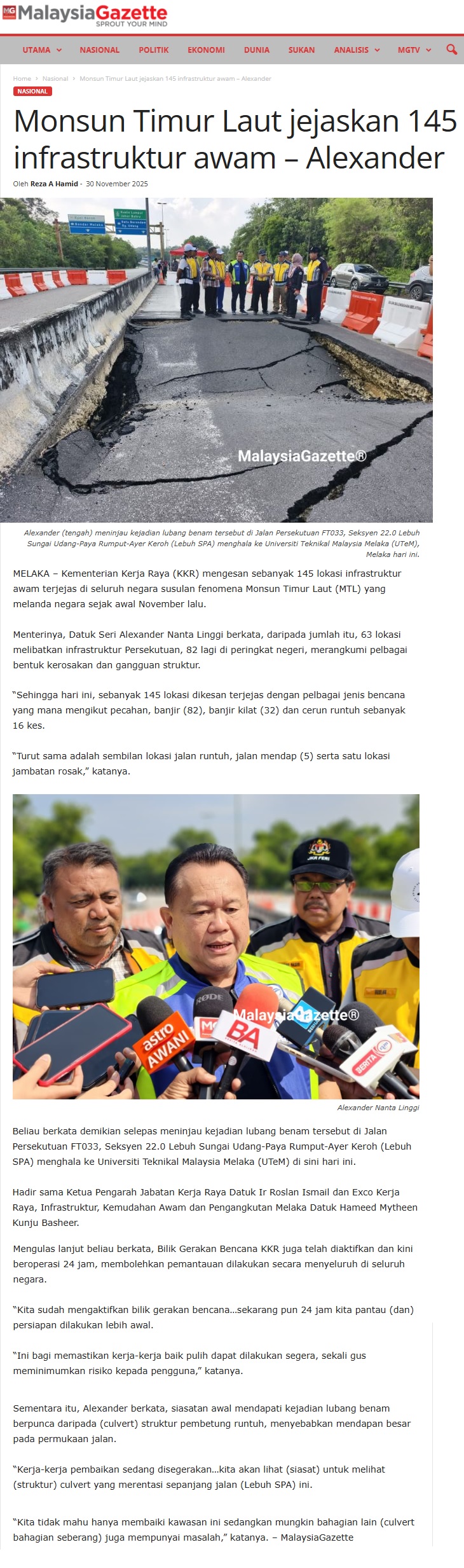 667 Monsun Timur Laut jejaskan 145 infrastruktur awam Alexander