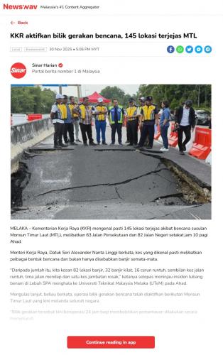 671 KKR aktifkan bilik gerakan bencana, 145 lokasi terjejas MTL