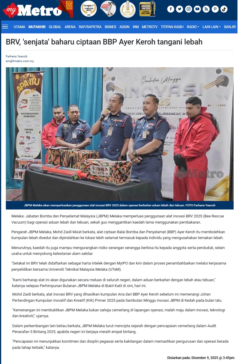705 BRV, 'senjata' baharu ciptaan BBP Ayer Keroh tangani lebah