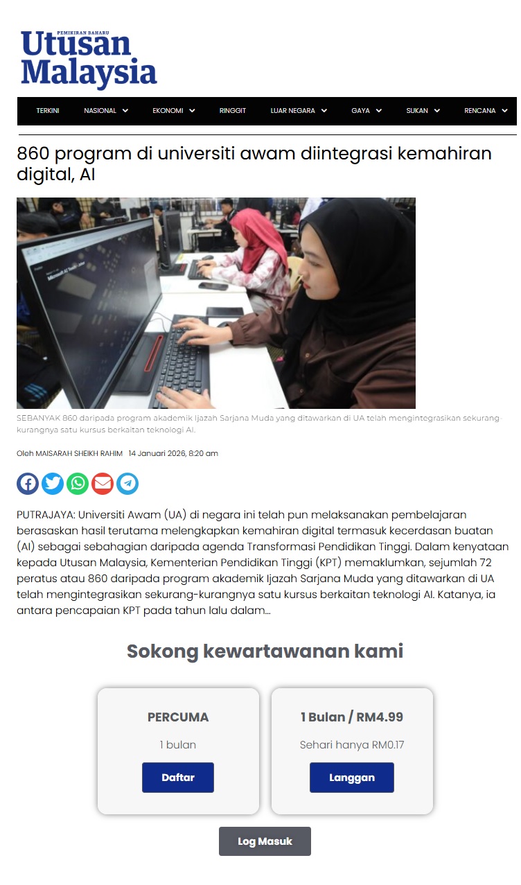 33 860 program di universiti awam diintegrasi kemahiran digital AI