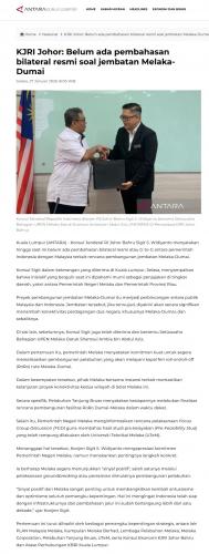 70 KJRI Johor Belum ada pembahasan bilateral resmi soal jembatan Melaka-Dumai antarakl
