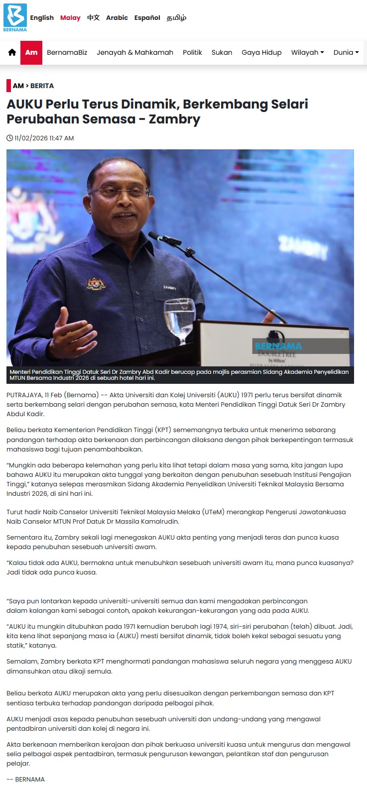 101 AUKU Perlu Terus Dinamik, Berkembang Selari Perubahan Semasa Zambry
