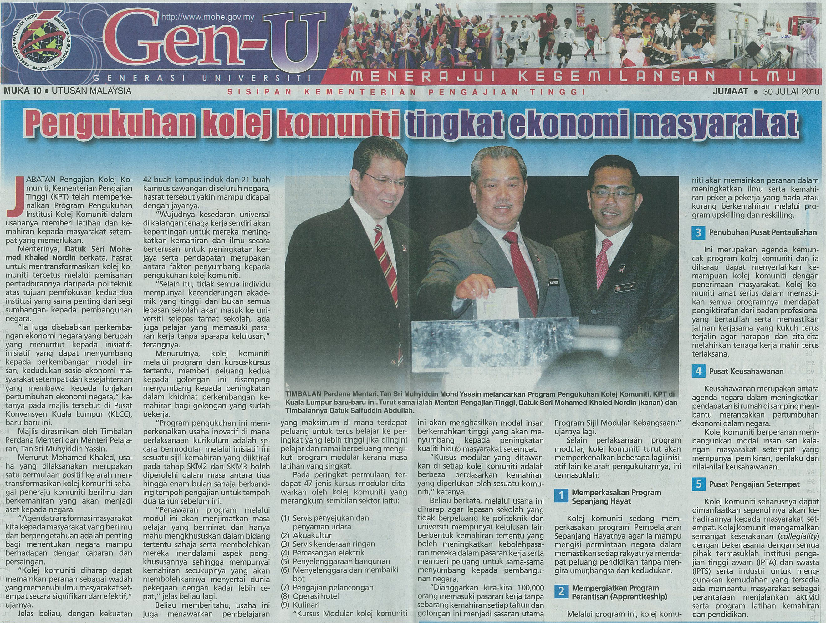 Gen-U : Pengukuhan Kolej Komuniti Tingkat Ekonomi Masyarakat