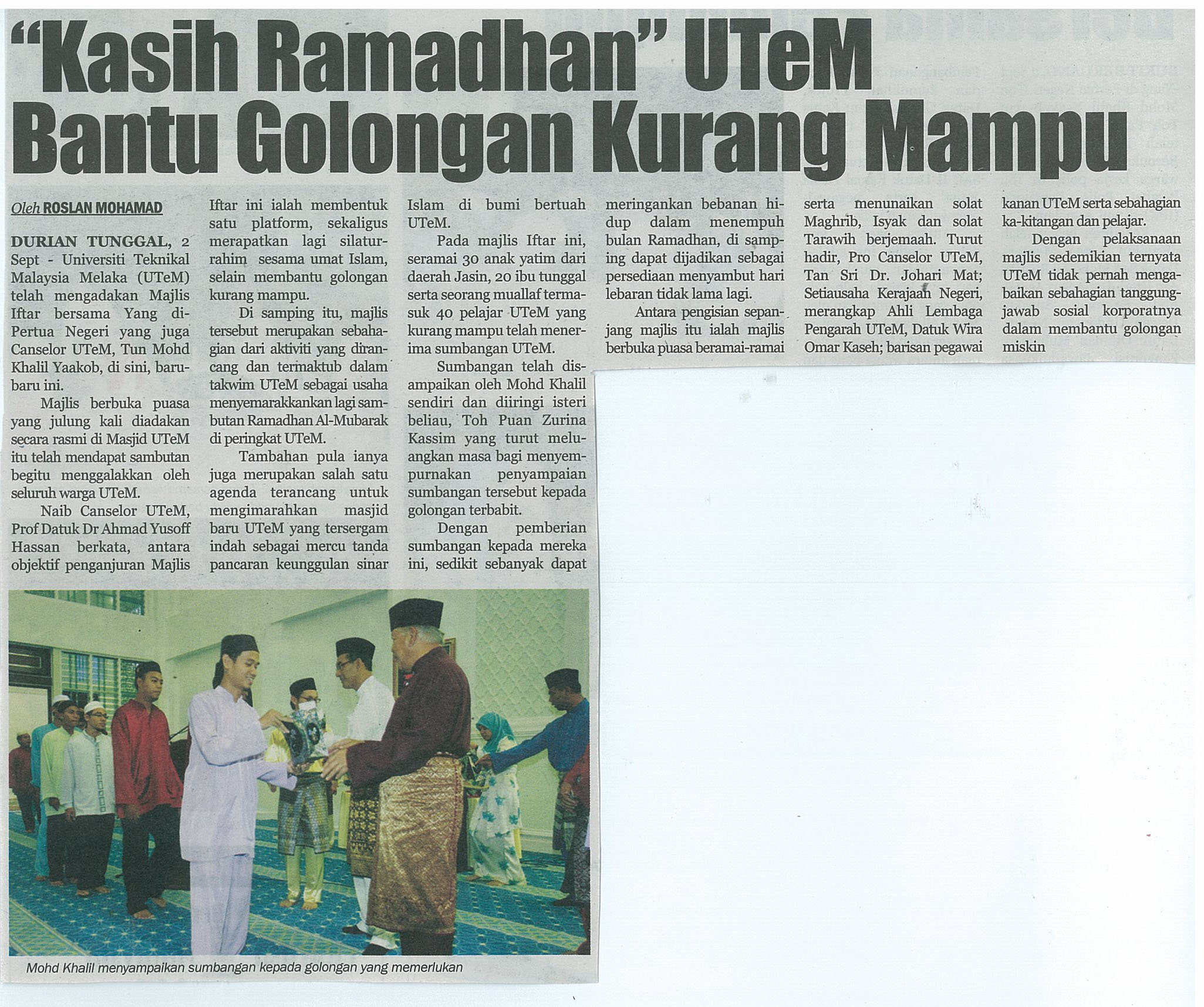 " Kasih Ramadhan" UTeM Bantu Golongan Kurang Mampu