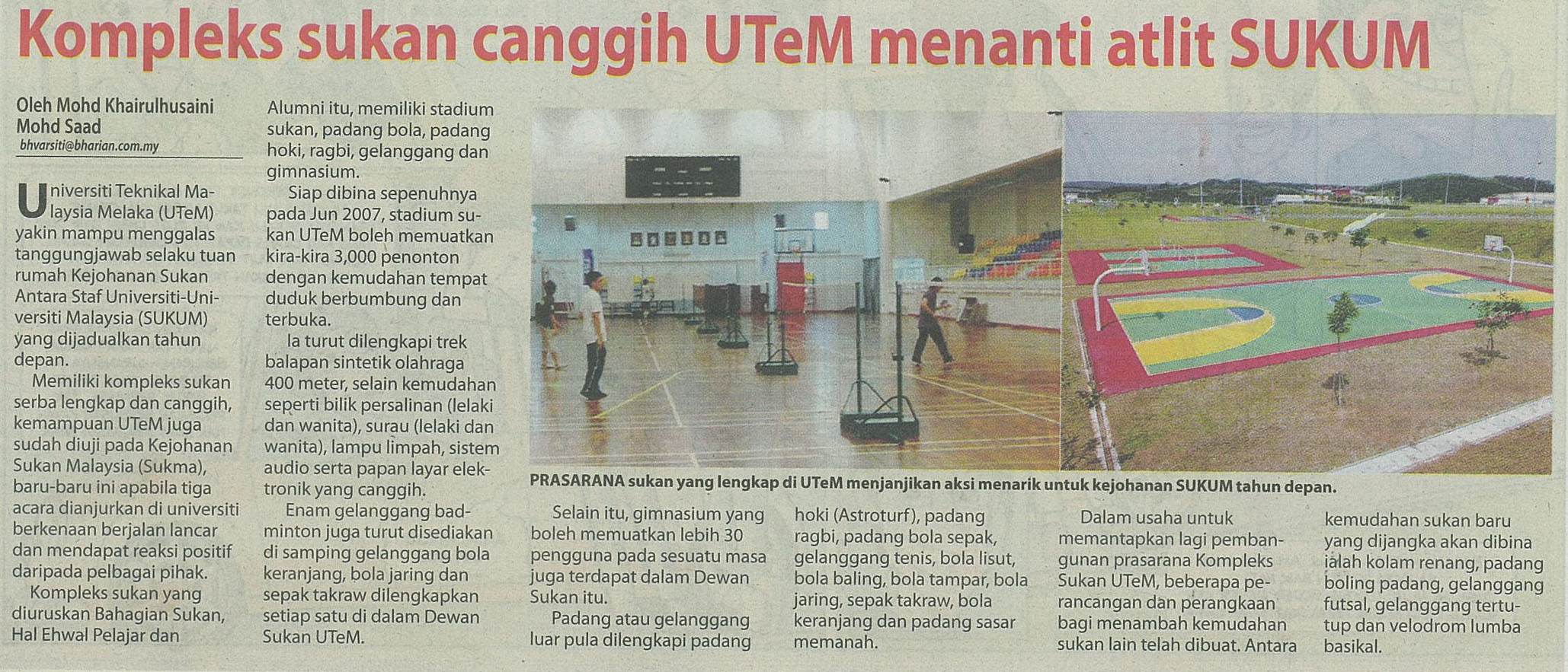 Kompleks Sukan Canggih UTeM Menanti Atlit SUKUM