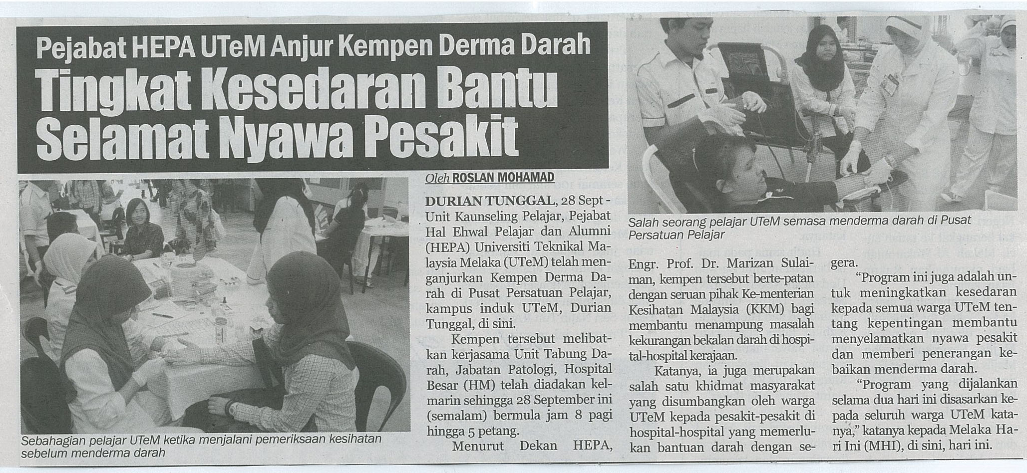 Pejabat HEPA UTeM Anjur Kempen Derma Darah