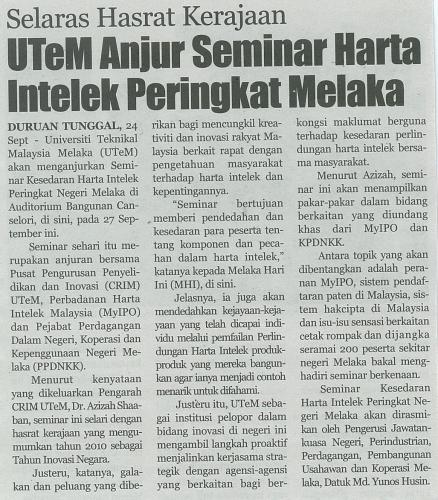 UTeM Anjur Seminar Harta Intelek Peringkat Melaka