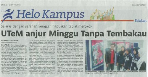 Selaras dengan saranan kerjaan hapuskan tabiat merokok UTeM anjur Minggu Tanpa Tembakau
