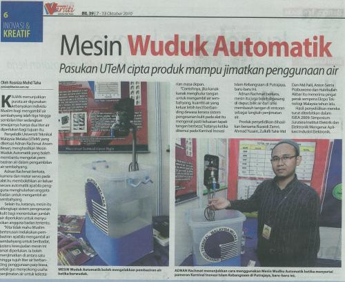 Mesin Wuduk Automatik Pasukan UTeM cipta produk mampu jimatkan penggunaan air