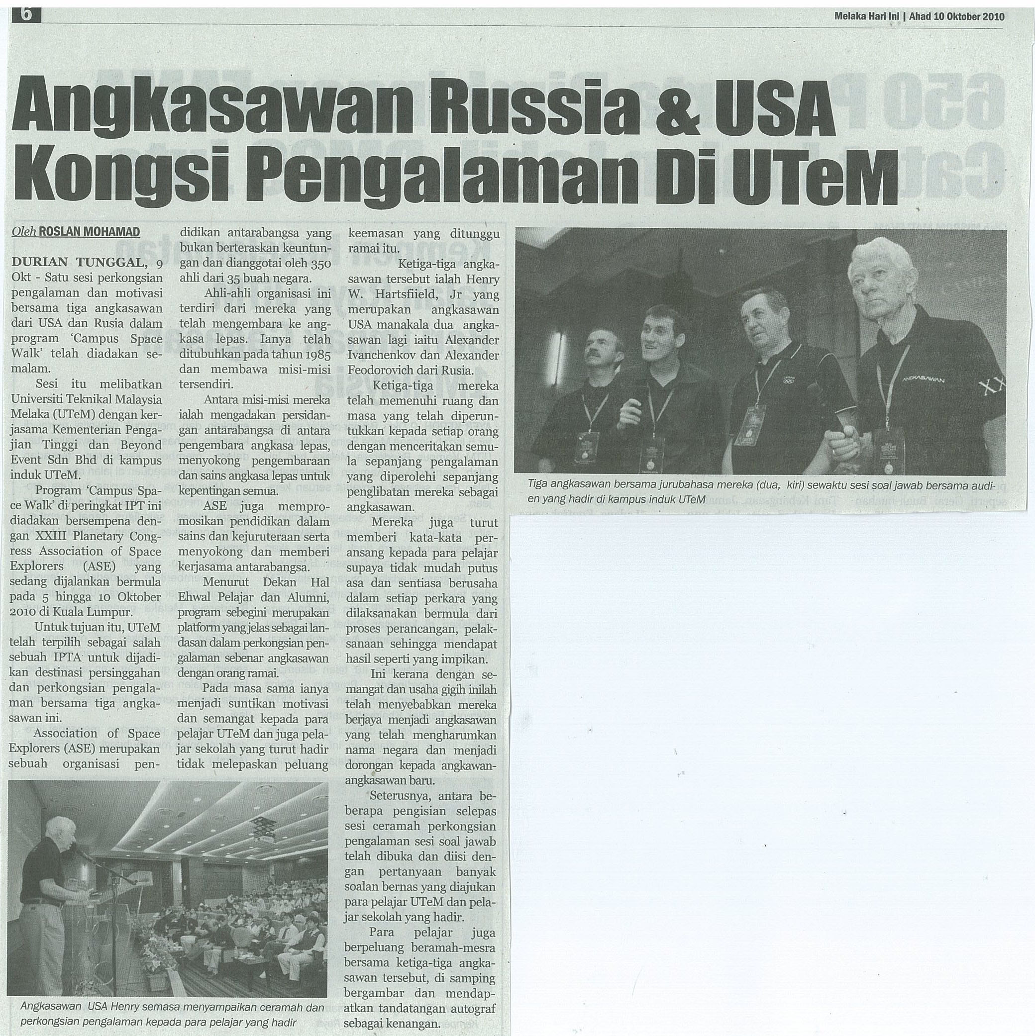 Angkasawan Russia & USA Kongsi Pengalaman Di UTeM