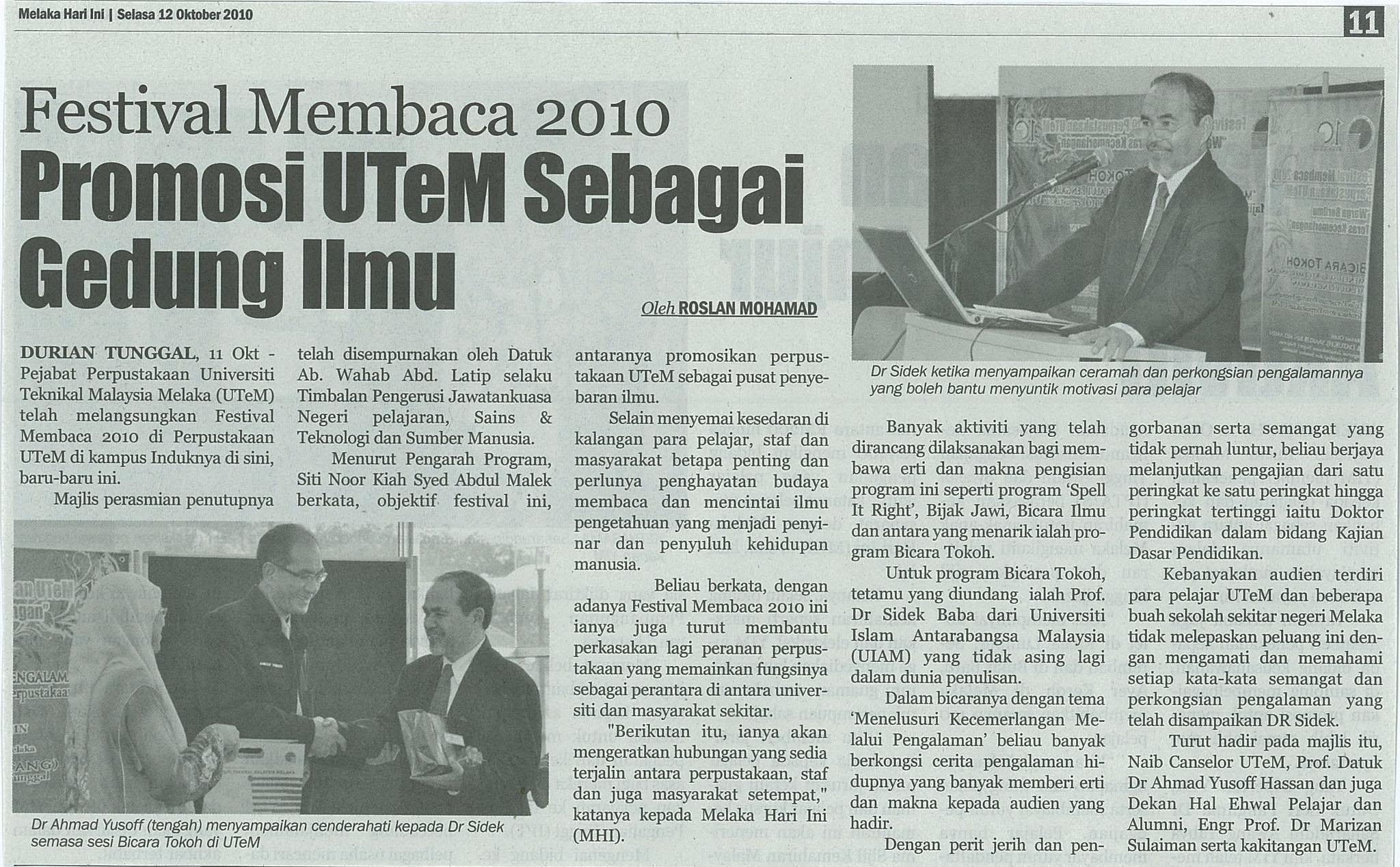 Festival Membaca 2010 Promosi UTeM Sebagai Gedung Ilmu