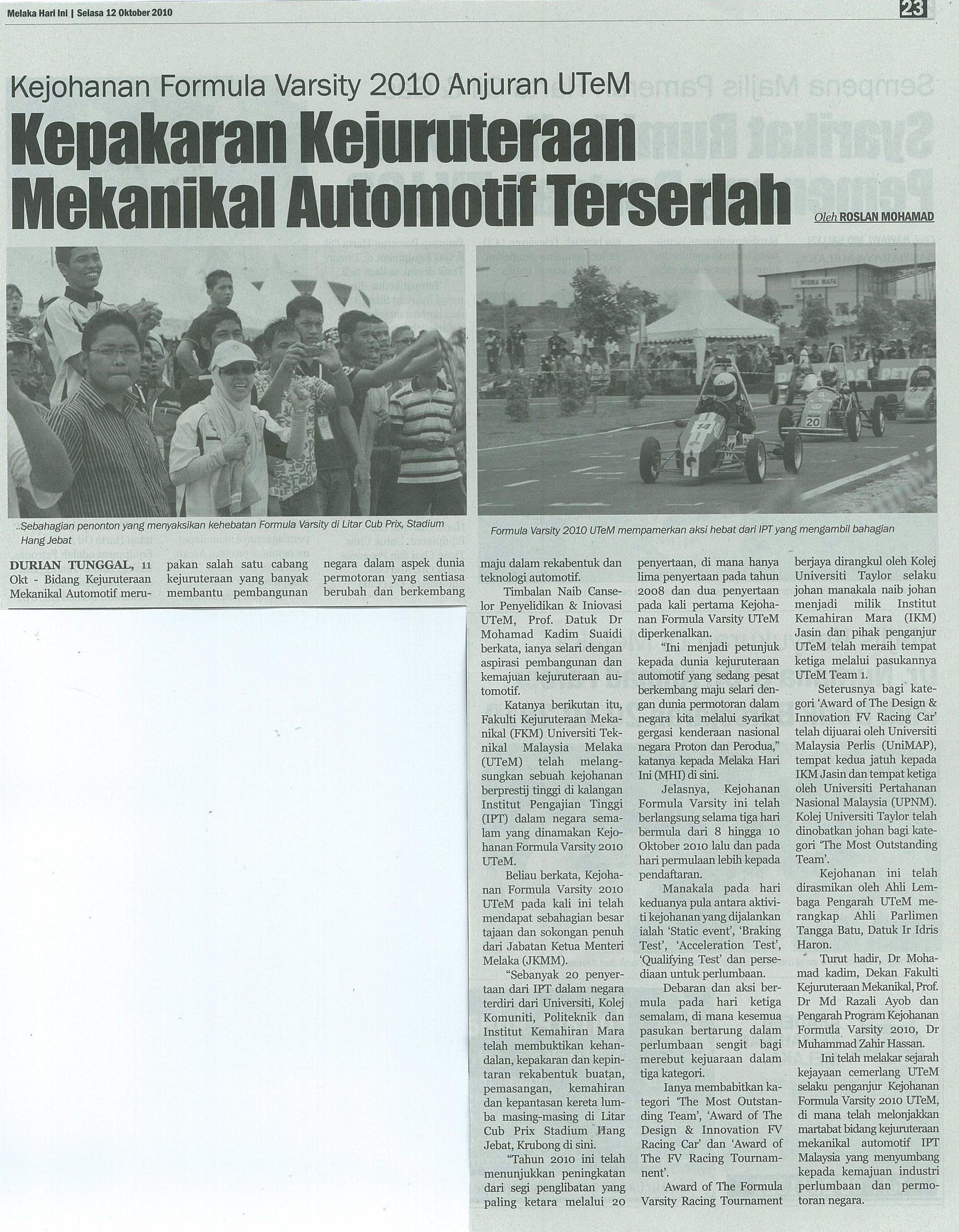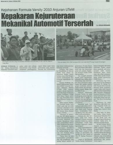 Kejohanan Formula Varsity 2010 Anjuran UTeM Kepakaran Kejuruteraan Mekanikal Automotif Terserlah