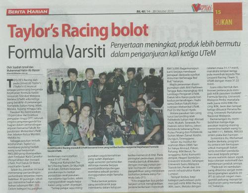 Taylor's Racing bolot Fomula Varsiti. Penyertaan meningkat, produk lebih bermutu dalam penganjuran kali ketiga UTeM