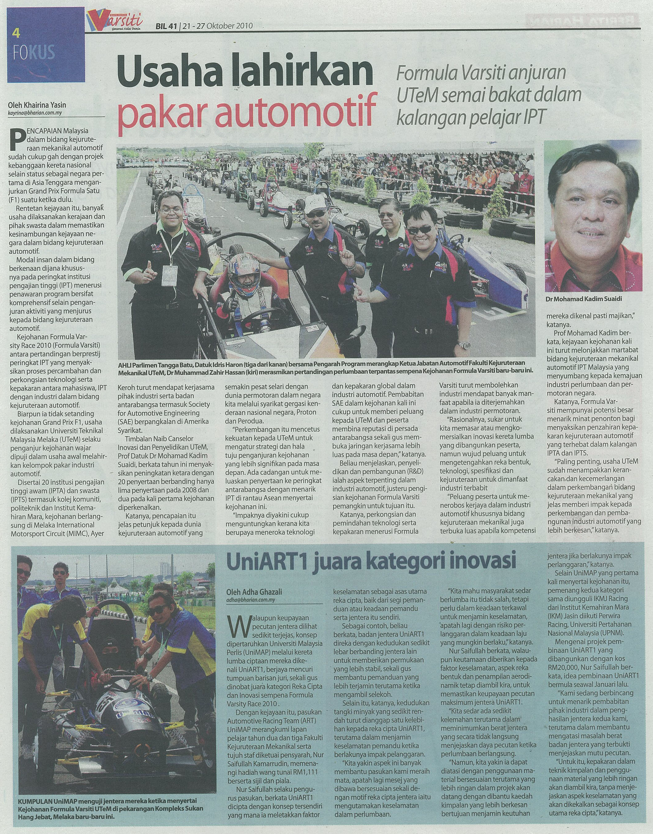 Formula Varsiti Anjuran UTeM Semai Bakat Dalam Kalangan Pelajar IPT