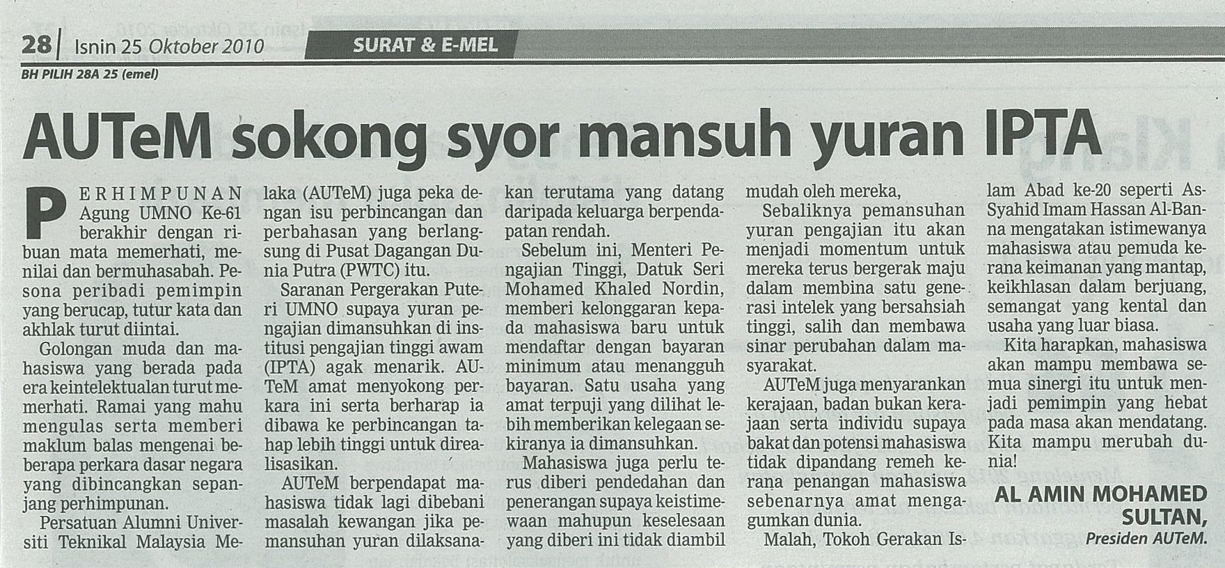 AUTeM sokong syor mansuh yuran IPTA