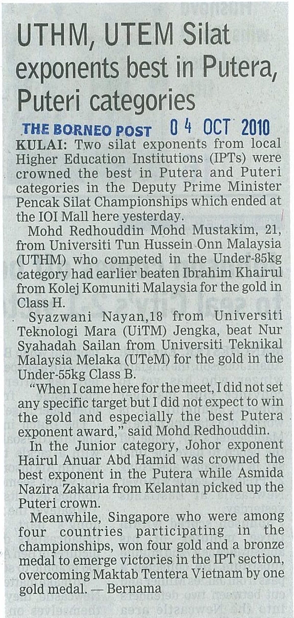UTHM, UTeM Silat exponents best in Putera, Puteri categories