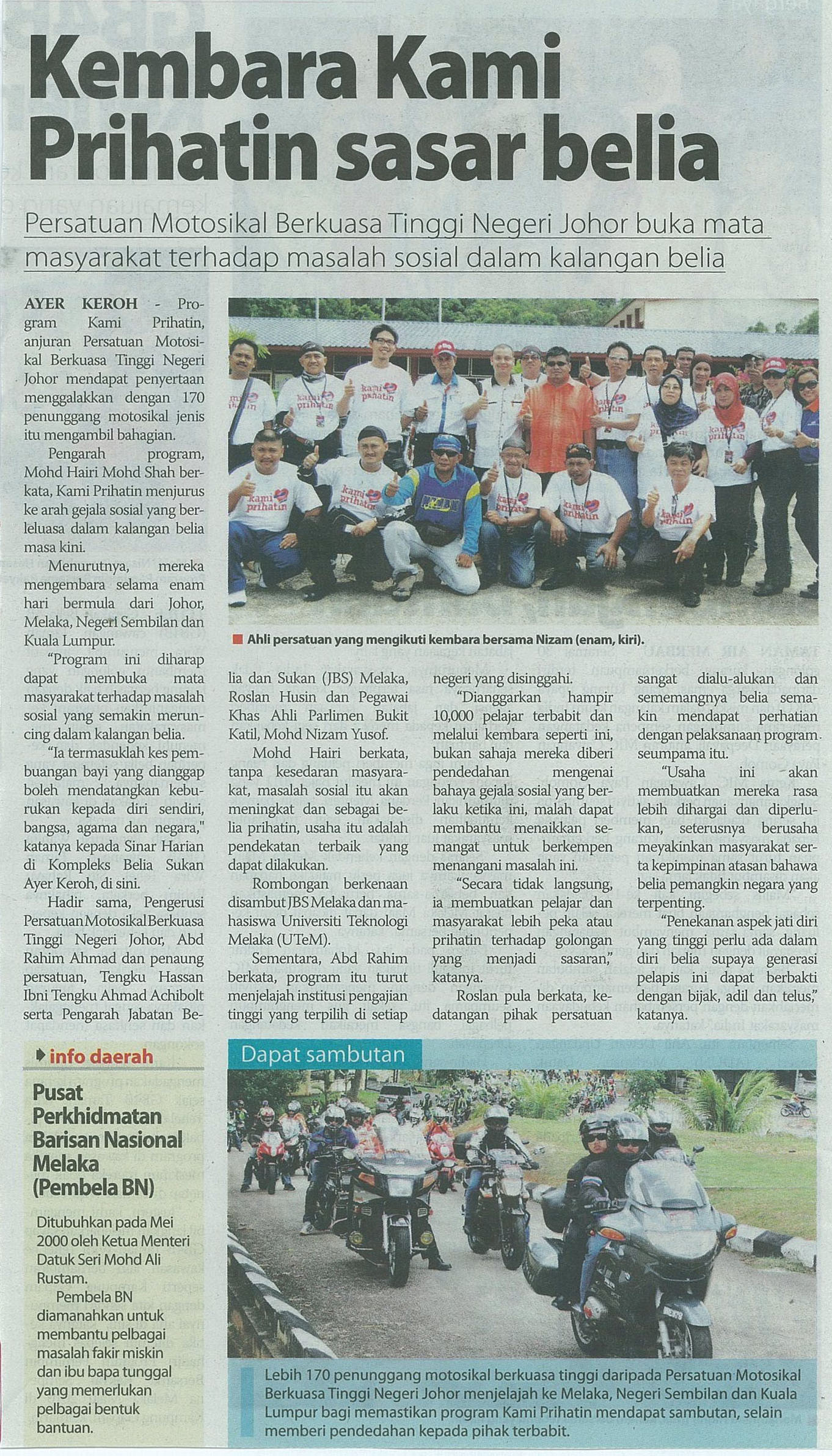Kembara Kami Prihatin sasar belia (Persatuan Motosikal Berkuasa Tinggi Negeri Johor buka mata masyarakat terhadap masalah sosial dalam kalangan belia