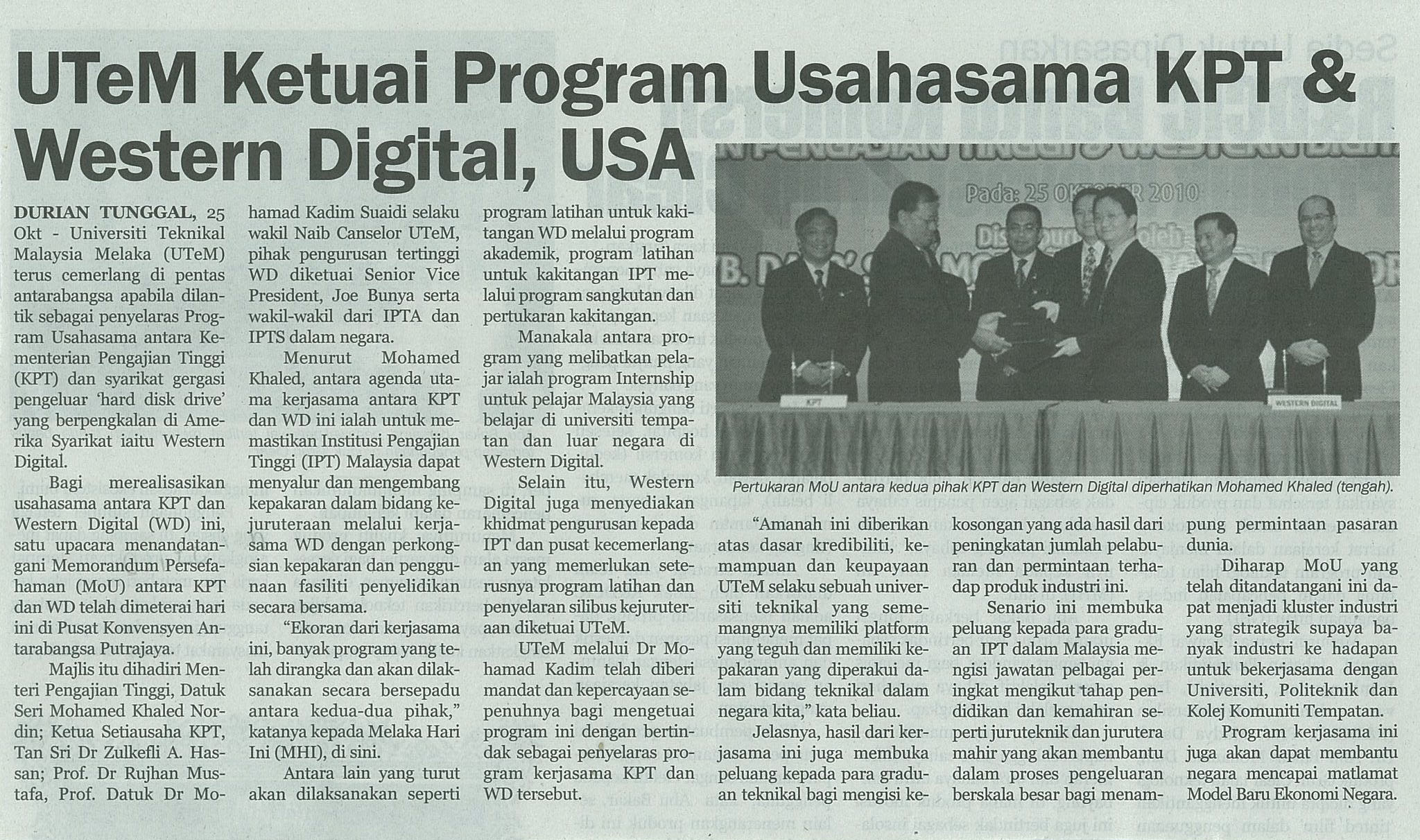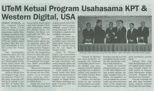 UTeM Ketua Program Usahawan KPT & Western Digital, USA