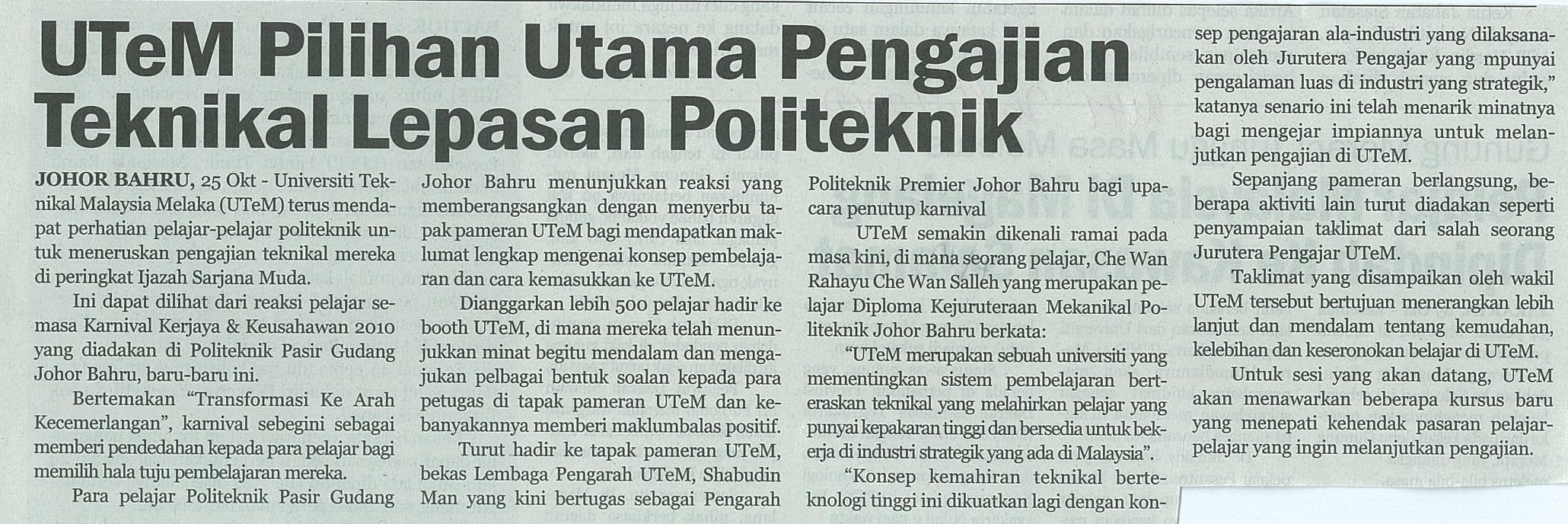 UTeM Pilihan Utama Pengajian Teknikal Lepasan Politeknik