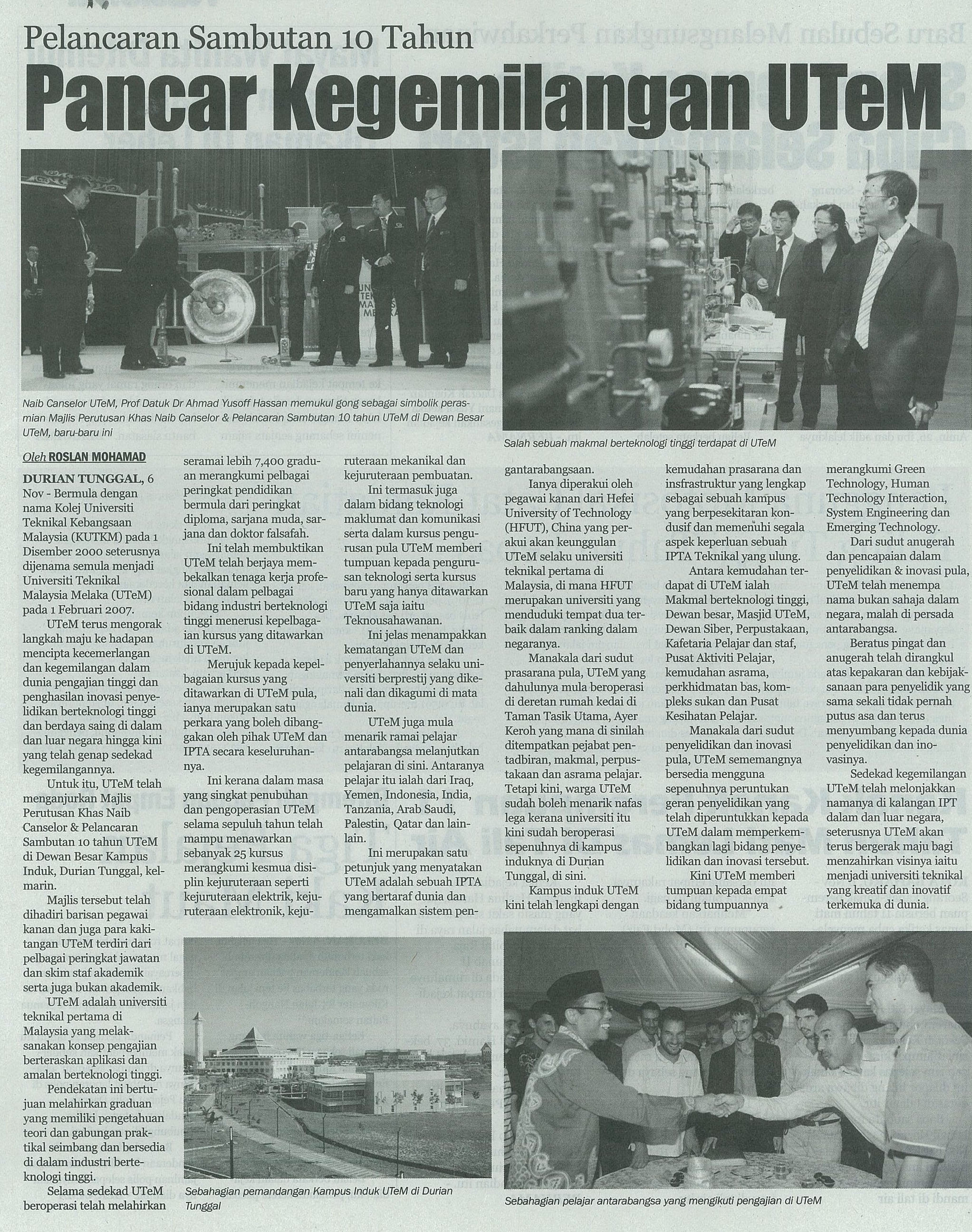 Pelancaran Sambutan 10 Tahun pancar Kegemilangan UTeM