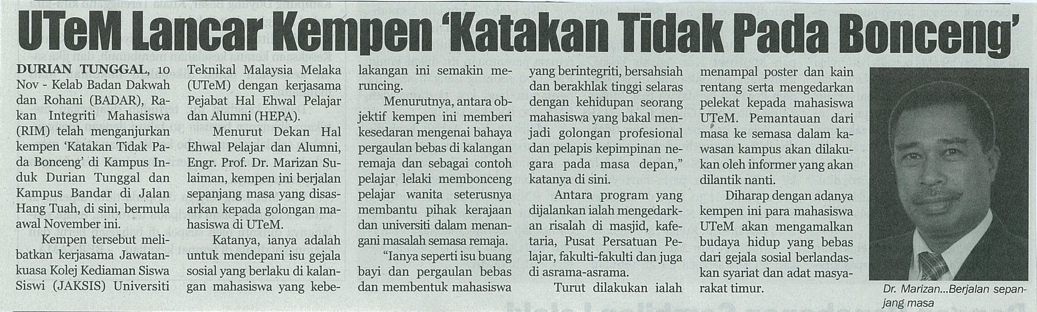 UTeM Lancar Kempen 'Katakan Tidak Pada Bonceng'