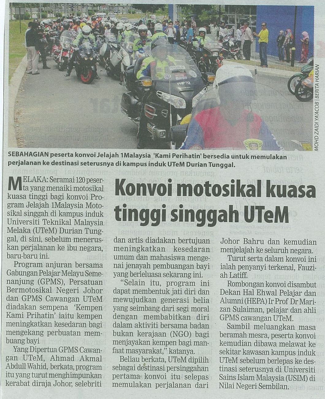 Konvoi motosikal kuasa tinggi singgah UTeM