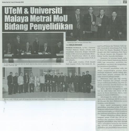 UTeM & Universiti Malaya Metrai MoU Bidang Penyelidikan