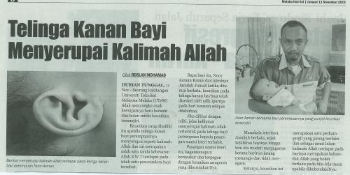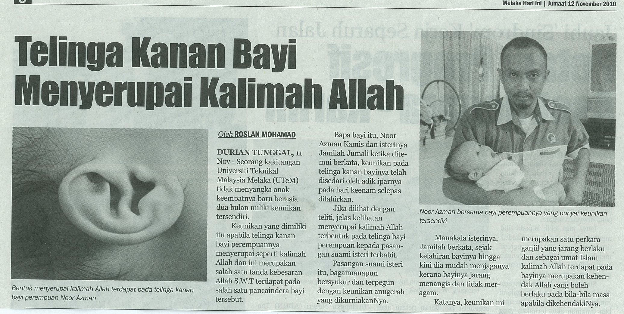 Telinga Kanan bayi Menyerupai Kalimah Allah