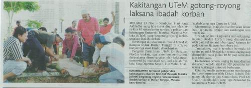 Kakitangan UTeM gotong-royong laksana ibadah korban