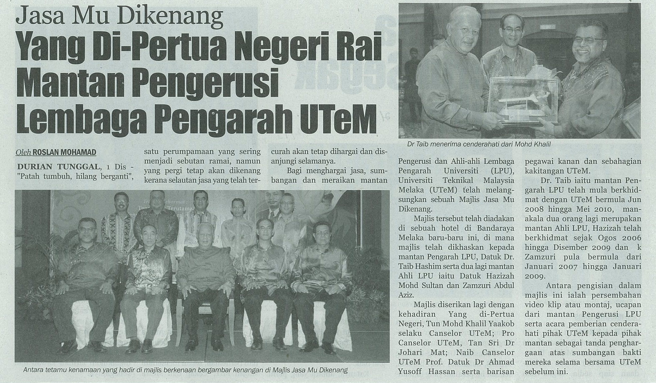 Jasa Mu Dikenang yang Di-Pertua Negeri Rai Mantan pengerusi Lembaga Pengarah UTeM