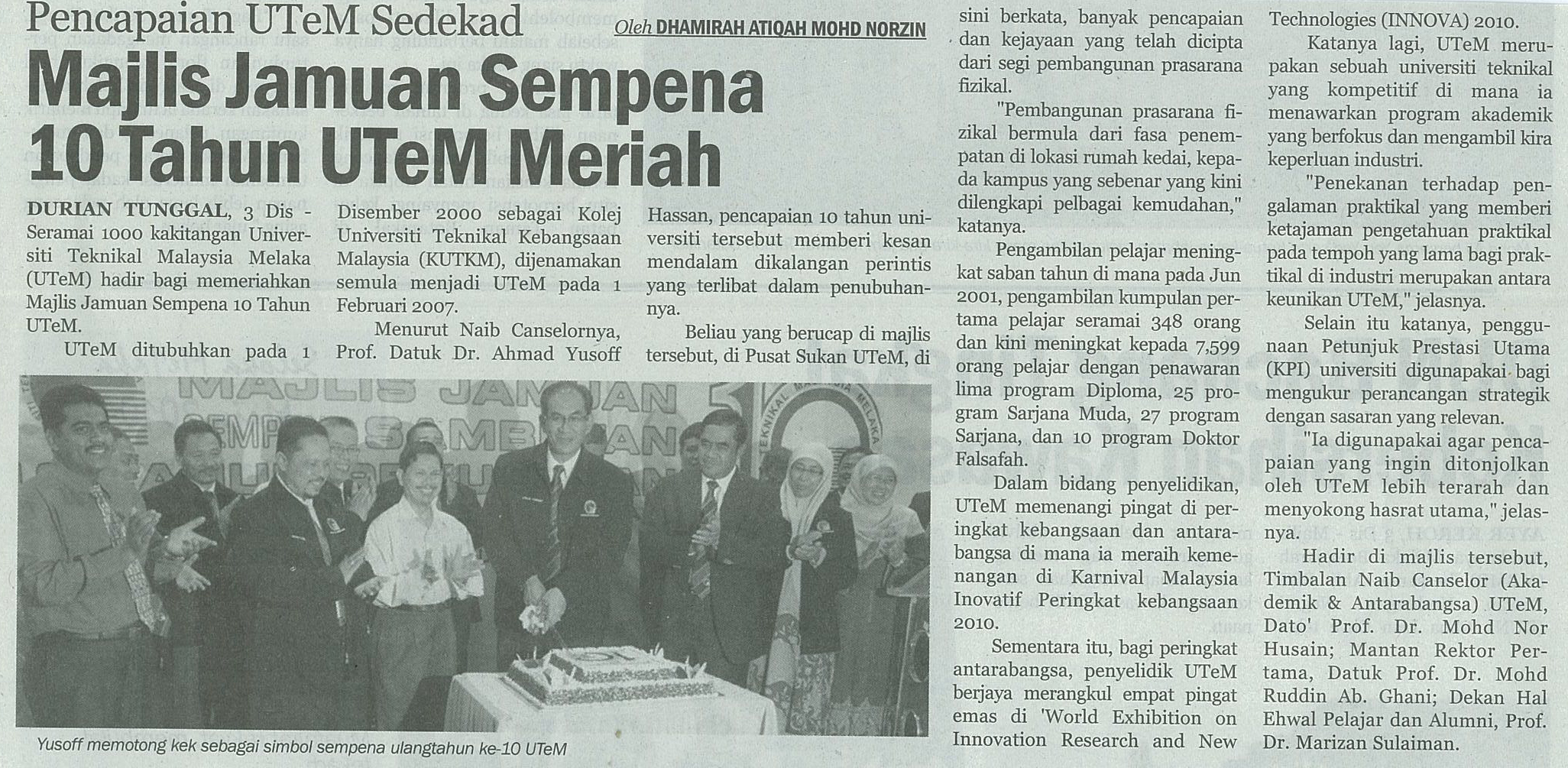 Pencapaian UTeM Sedekad Majlis Jamuan Sempena 10 Tahun UTeM Meriah