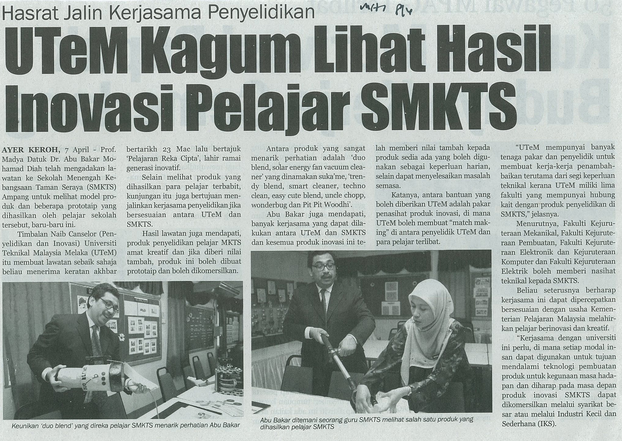 UTeM Kagum Lihat Hasil Kerja Pelajar SMKTS