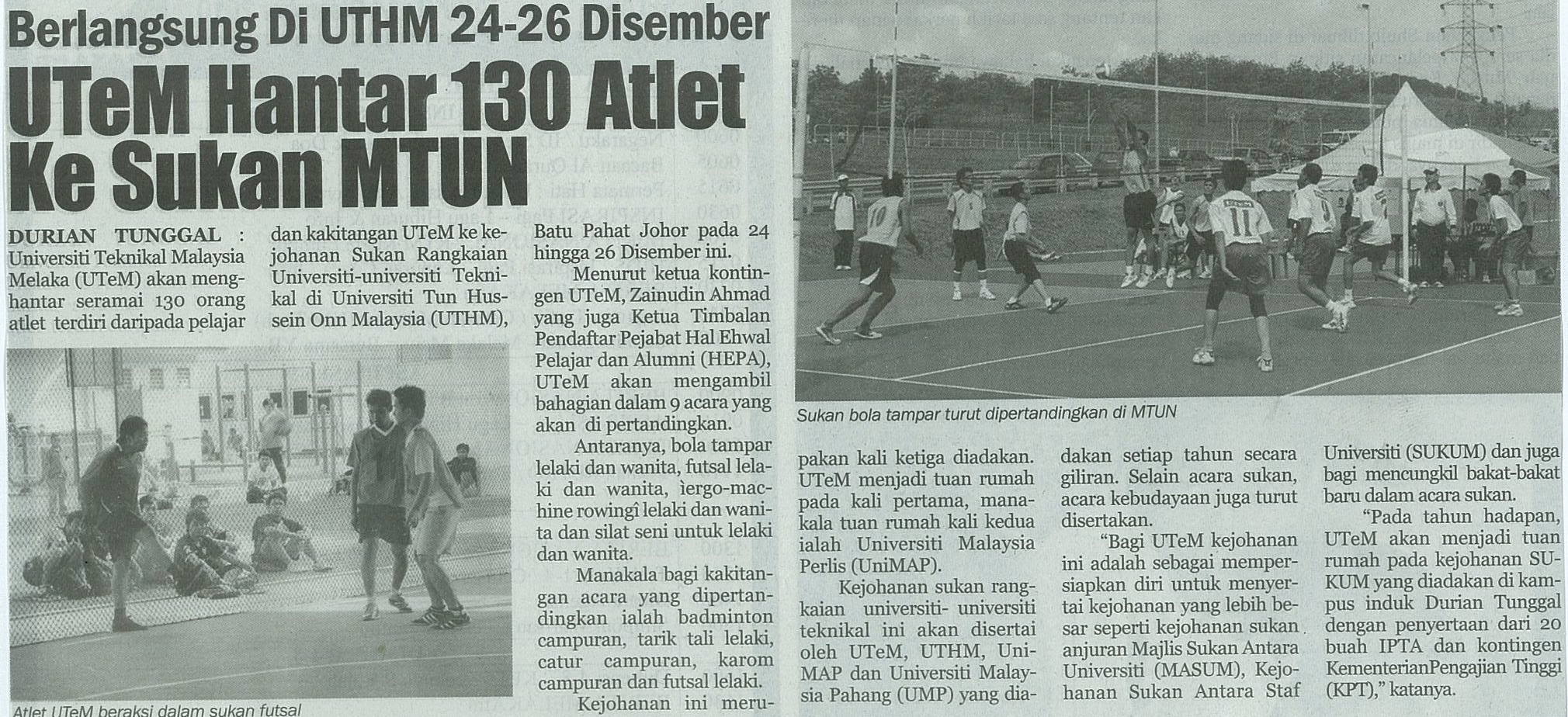 Berlangsung Di UTHM 24-26 Disember UTeM Hantar 130 Atlet Ke Sukan MTUN