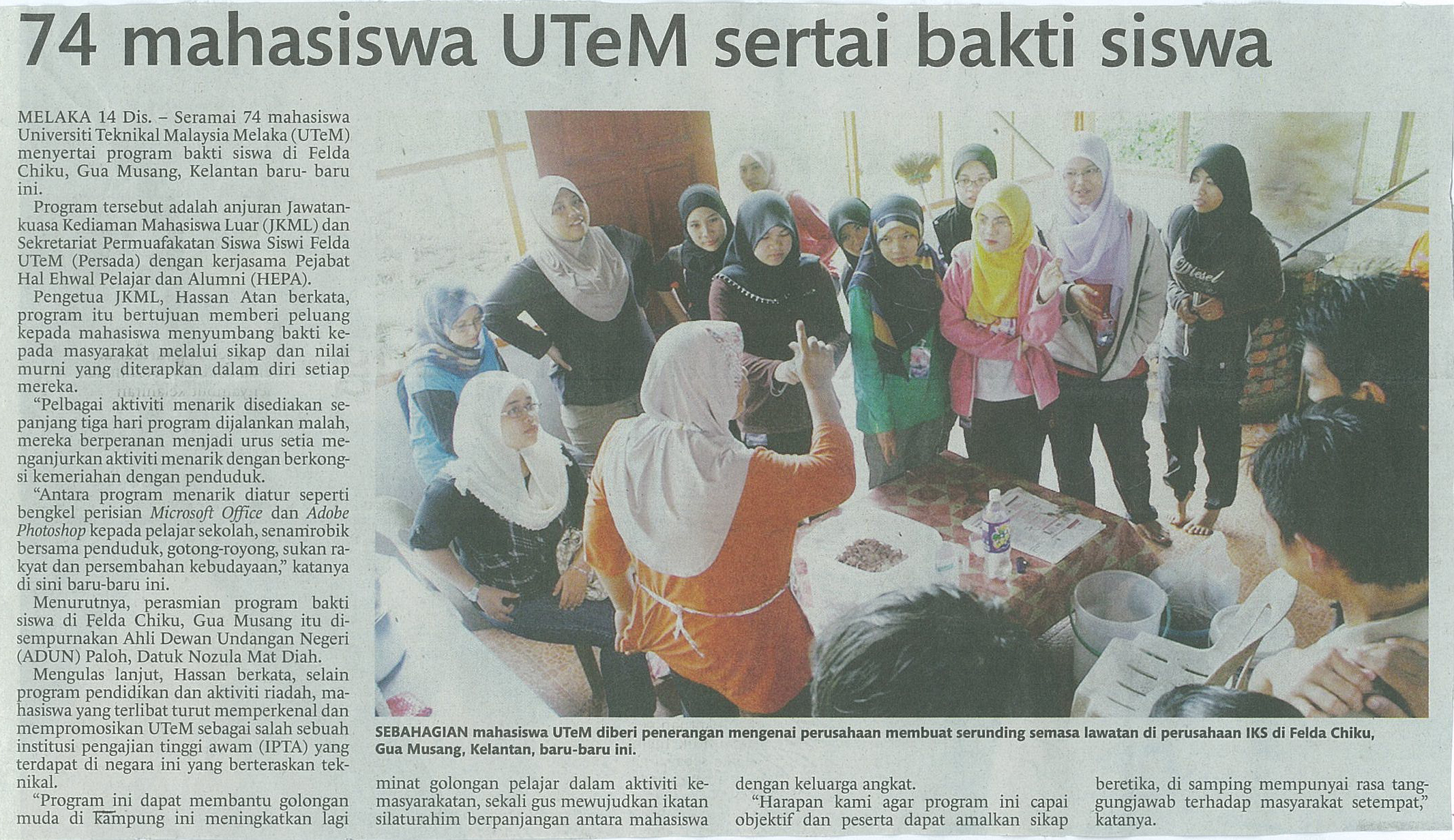 74 mahasiswa UTeM sertai bakti siswa