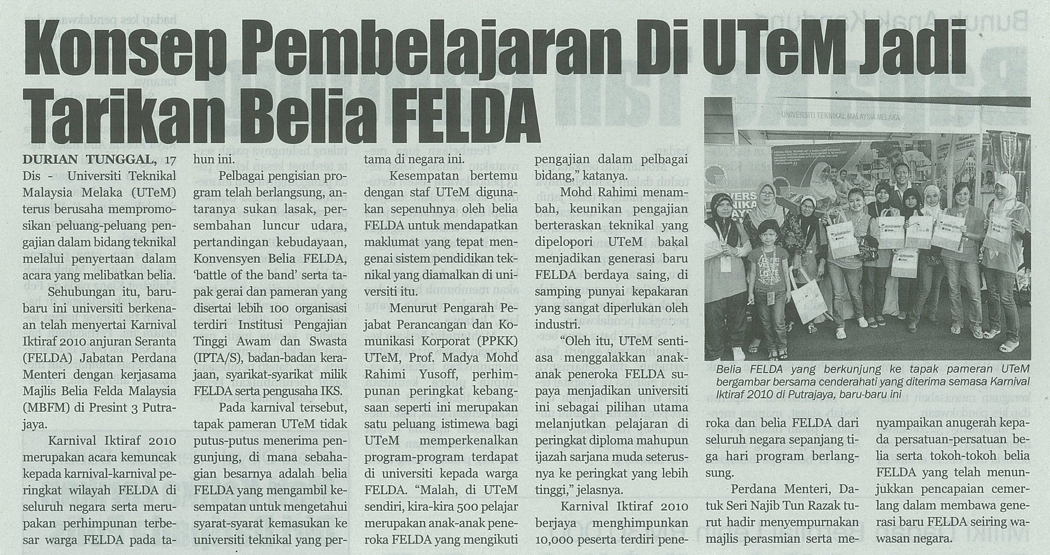 Konsep Pembelajaran Di UTeM Jadi Tarikan Belia FELDA