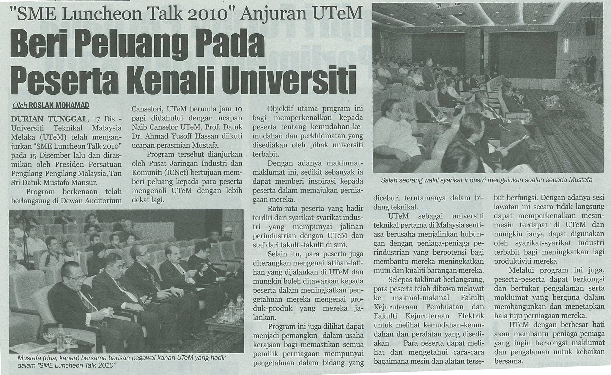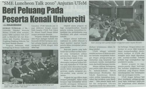 "SME Luncheon Talk 2010" Anjuran UTeM Beri Peluang Pada Peserta Kenali Universiti