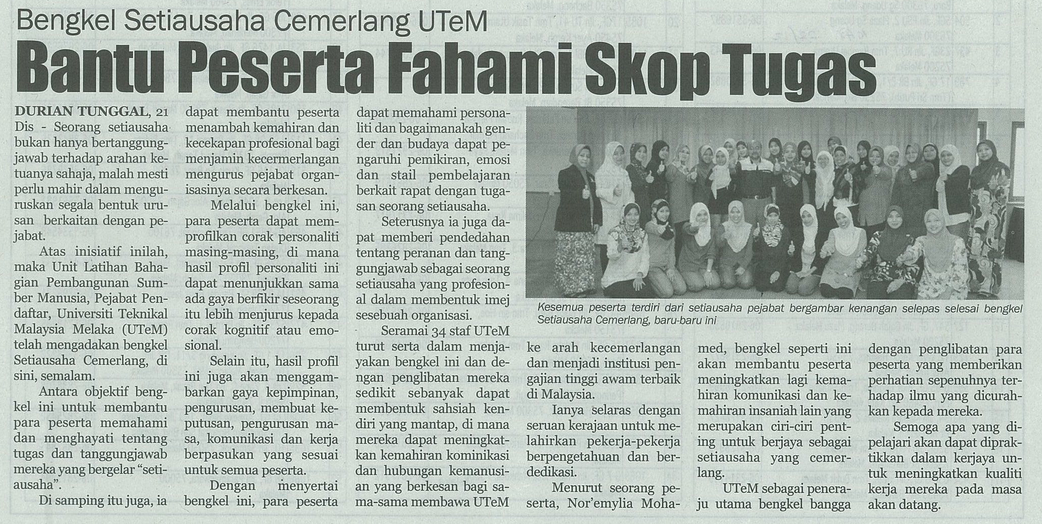 Bengkel Setiausaha Cemerlang UTeM Bantu Peserta Fahami Skop Tugas